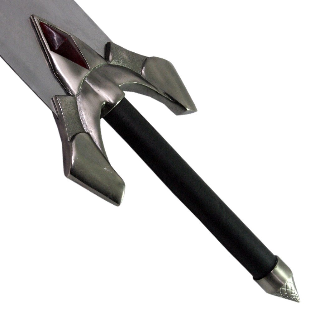 We offer it at a Cheap price. Thus, usable both as a collectible and a decorative item, as well. The leather-wrapped handle and the red gem on guard enhance exquisiteness. The stainless-steel blade is pointed at the end, making its design unique. The Ultima Sword has a guard bent towards the back, and the pommel is pointed. This Sword looks much like the original wielded by Cloud. Hence, stop waiting and book one for yourself or present someone as a gift. Buy this Sword from the Online Swords Store of Ours and save money.