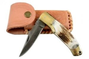 This beautiful pocket folding knife with its excellent finish and dashing looks it also got a rock solid construction. This knife is a glorious work of exquisite art by a team of artists. This knife has unique, flawless and glorious details and beauty which will make it look most impressive in any knife collection. Blade of this knife is hand forged with high carbon steels forged in one of the finest pattern. Not many custom makers can keep such pattern of layers upon layers flowing all the way to the edge, having a saw blade effect at microscopic level which allows the blade to keep cutting for longer period of time while other blades have dulled. Gorgeous sturdy handle is a work of glorious art with marvelous intricate details and beauty never seen before. The gorgeous handle is made of bull horn fastened with brass rivets for life time durability.