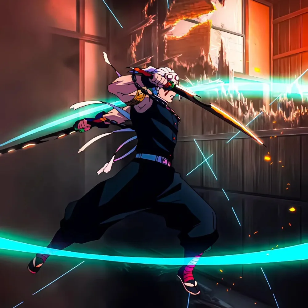 Disregard modest katanas, companion. Tengen Uzui uses twin blades, strong and severe, their golden gleam alluding to the tempest of sound they release. Fastened together, they’re an expansion of his “Sound Breathing,” an orchestra of obliteration led by a pro at hearing. However, try not to be tricked by the glimmer. These blades, singing their melody of decimation, demonstrated their value against the Upper Rank Six.