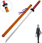 The Jujutsu Kaisen Kasumi Miwa Sword comes with a bright orange wooden sheath adorned with a purple ribbon, giving it an anime-accurate, stylish look.