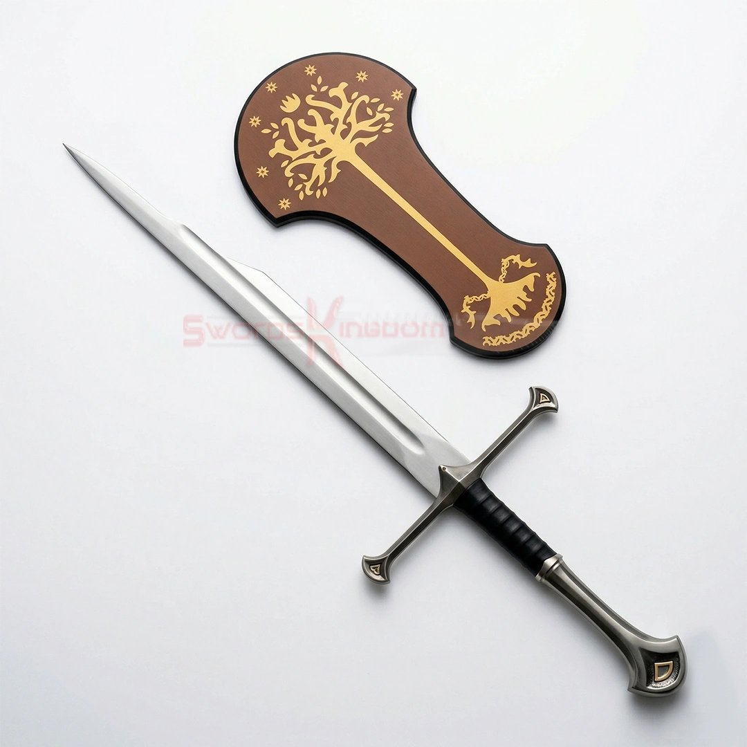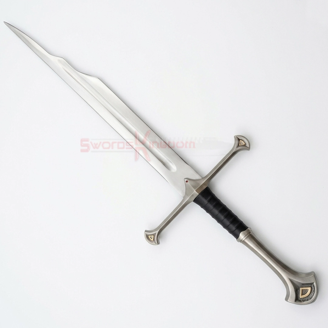 The Shards of Narsil are a legendary piece from the Lord of the Rings series, famously known as the broken sword. This replica is best for collectors, gift-givers, and LOTR fans who appreciate the profound symbolism behind this legendary blade. Made from high-quality stainless steel to resemble a broken blade, the sword features a durable cast metal handle wrapped in faux leather for a realistic and authentic appearance.